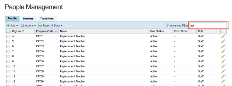 - Use default permissions set to CompassReplacementStaff, which limit portal access.