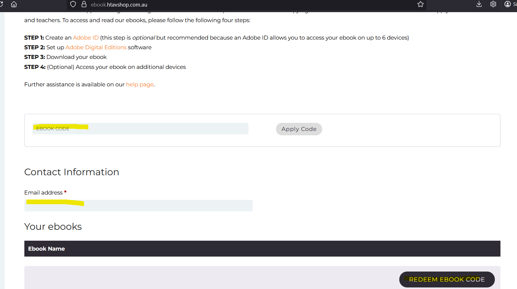 STEP 2: Use provided ebook code on the HTAV ebook redemption portal to generate your download link.